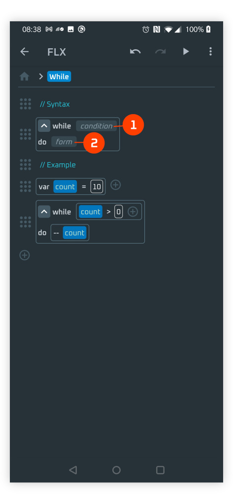 Function while implements a loop expression which executes its body form continuously while its condition is satisfied. The last evaluated value of the body form is returned as the expression value of while function.