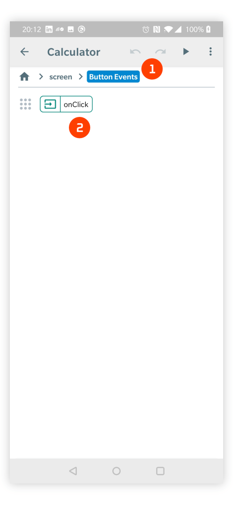 - Program Navigation Bar indicating that we are in the Events Model of a Button widget.