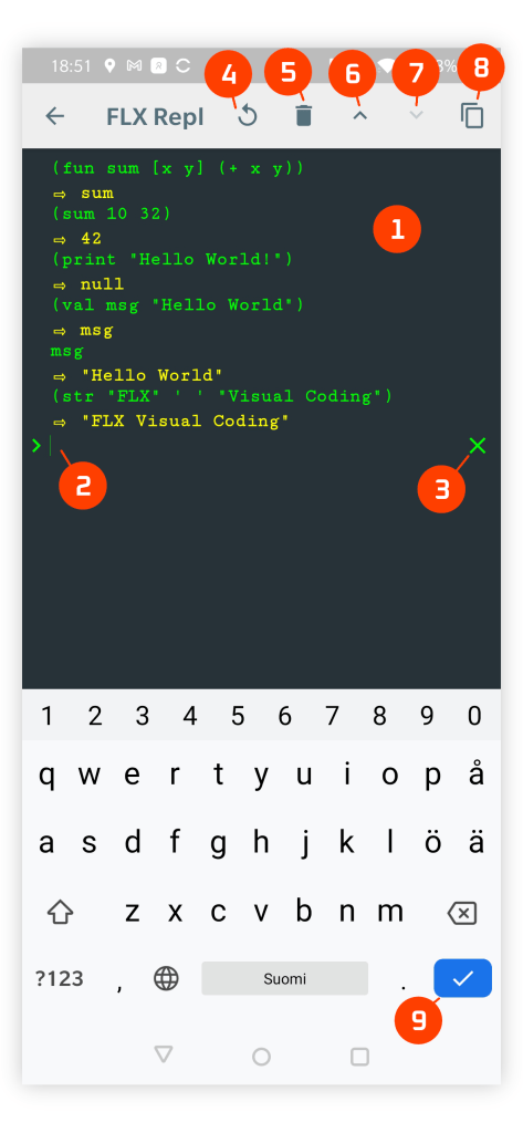 The runtime of Visual FLX language is based on FLX Lisp. FLX app does not feature anymore the FLX REPL starting from app version 1.2.10.