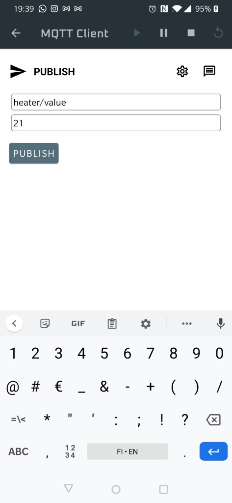 connection– aMqttConnectionrepresenting a connection to a brokertopic– a topic as aStringmessage– a message to be published given as aString